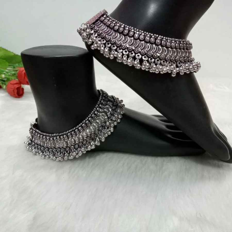 New Indian Oxidized Anklets Nupur With Beautiful Design For Women -2P (Garman Silver) - Payel