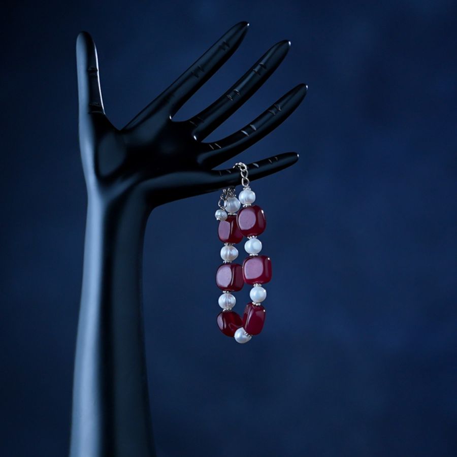 "Color: White and Maroon Material: Real Pearl and Gemstone Value Addition: Length: 15.24 CM Measurement Unit: CM Type: Adjustable Unit: Single Care: Store them in a soft cloth pouch or a separate jewelry box to prevent scratches"