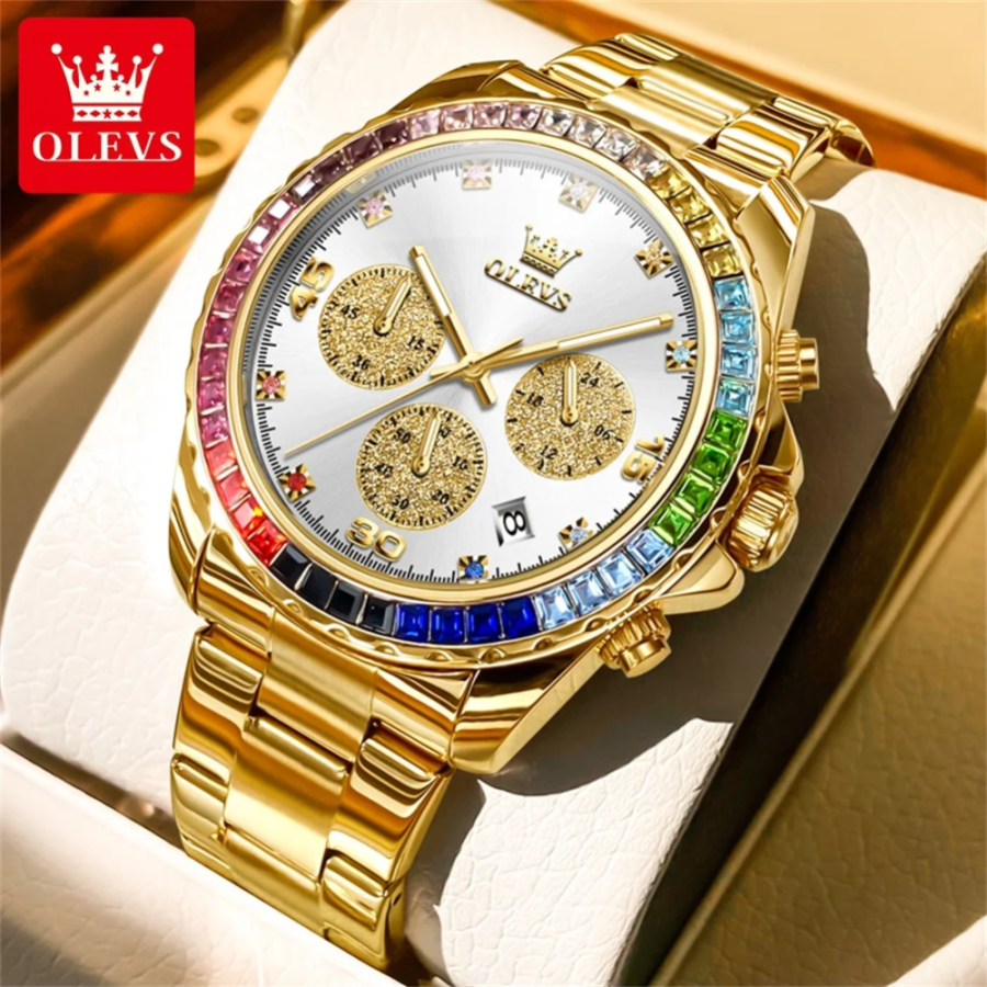 Olevs 2939 RoseGold Stainless Steel Chronograph Watch